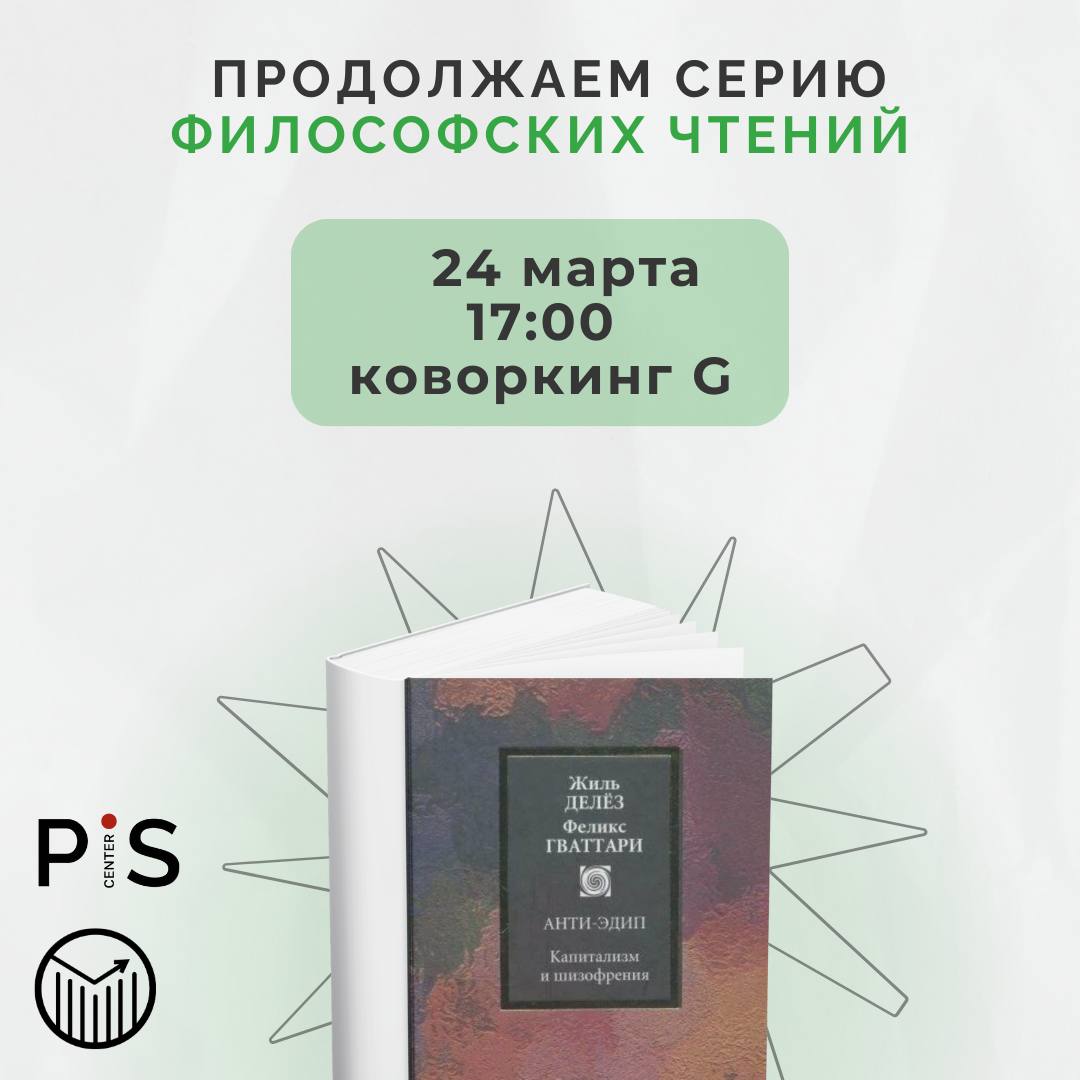 Для следующей встречи был выбран текст французских авторов, философа Жиля Делёза и психоаналитика Феликса Гваттари, «Анти-Эдип», 2 глава «Психоанализ и фамилиализм: святое семейство», подглавы с 1 по 5 включительно.