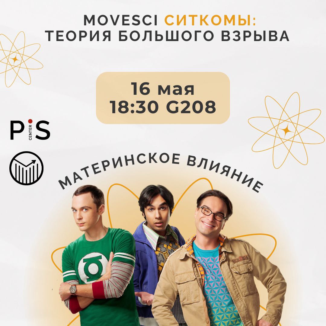Приглашаем вас на следующий кинопоказ MoveSci, где мы покажем вам культовый сериал – «Теория большого взрыва», а именно – серию «Материнское влияние».